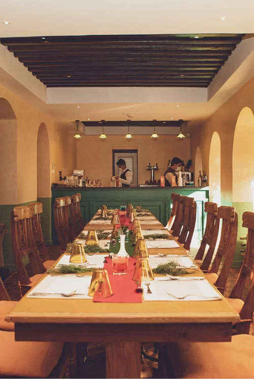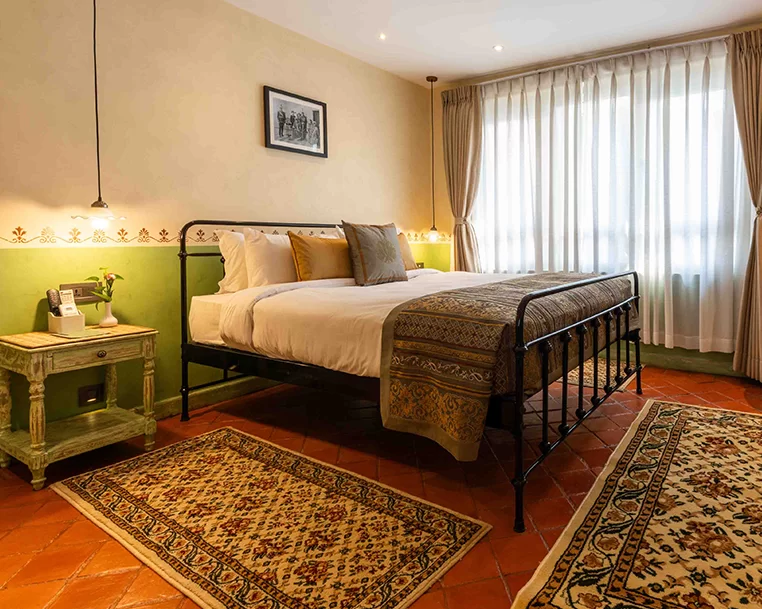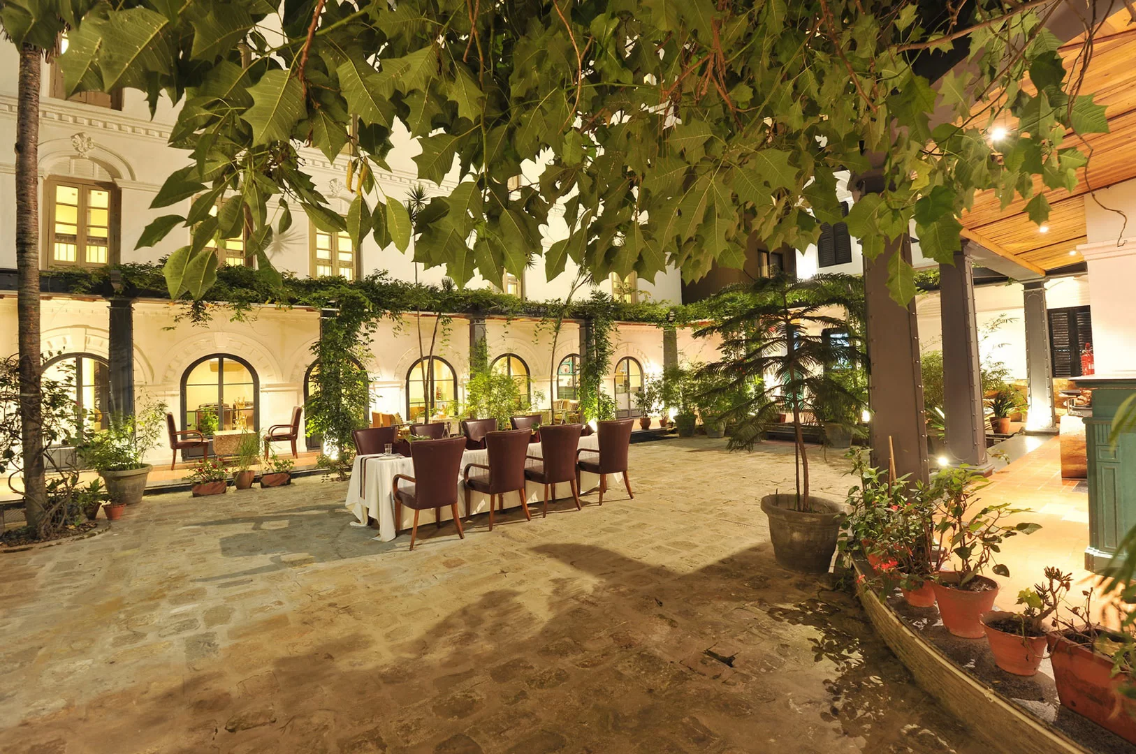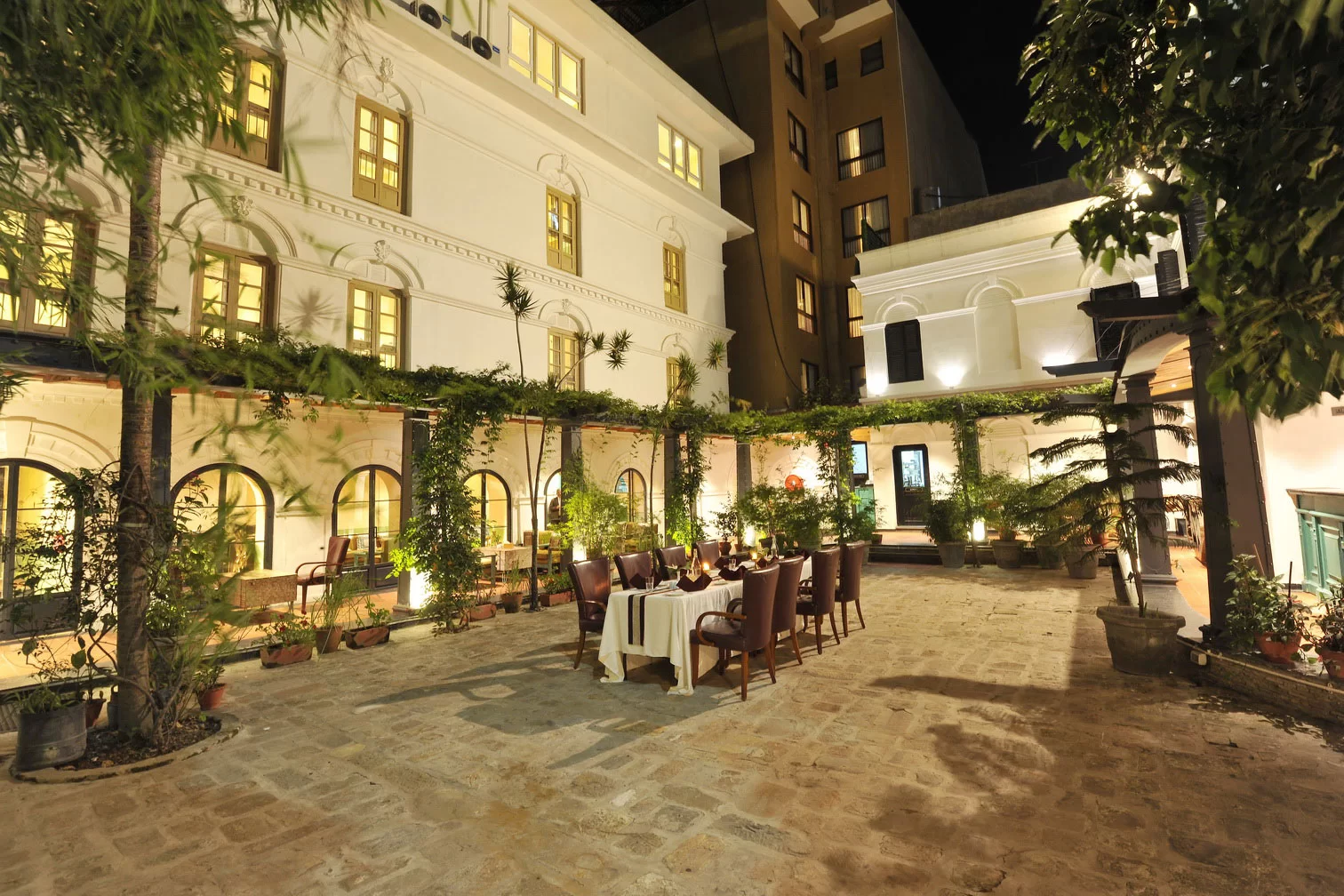 This 26-room L-shaped mansion connects with the already ornate Nepali Ghar, which is an ode to Nepali craftsmanship, and provides an ornate juxtaposition with a subtle fusion of modern art deco and neoclassical interiors in contrast to the wooden decor of Nepali ghar.